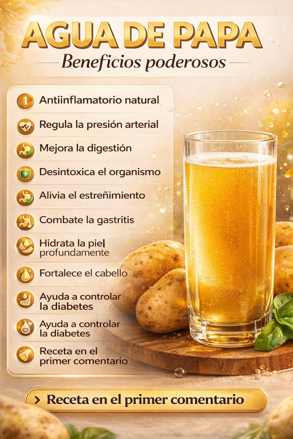 El agua de papa es el líquido que se obtiene al hervir papas o al extraer el jugo de la papa cruda. Aunque muchas personas la descartan, esta agua concentra una amplia gama de nutrientes: minerales como potasio, magnesio, fósforo e hierroenzimas digestivasantioxidantes, y vitaminas del complejo B y vitamina C.